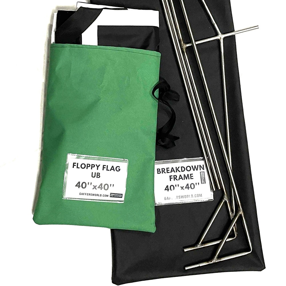 Includes: two bags, black/white fabric with rubber bands and Velcro straps, collapsible stainless steel frame